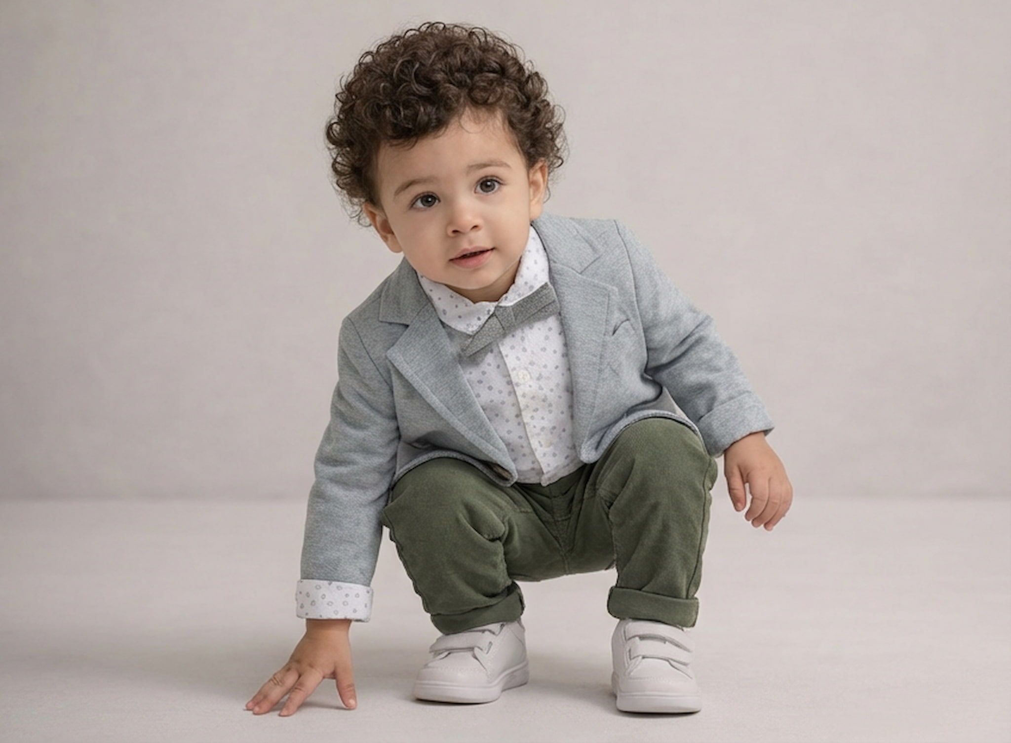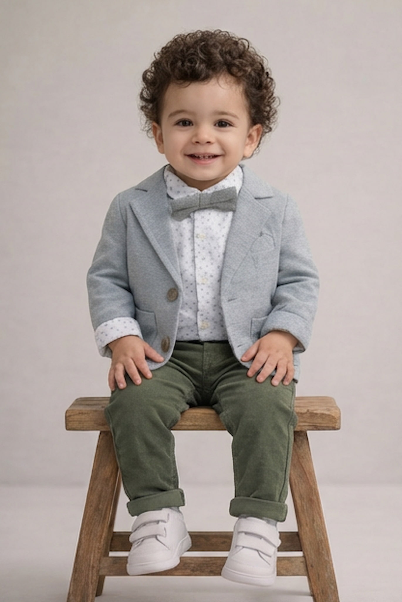 Sublimez votre tout-petit avec cet ensemble habillé garçon idéal pour toute occasion spéciale. Le kit comprend une veste blazer vert, un nœud papillon, une chemise et un pantalon pour un look de fête complet et raffiné.