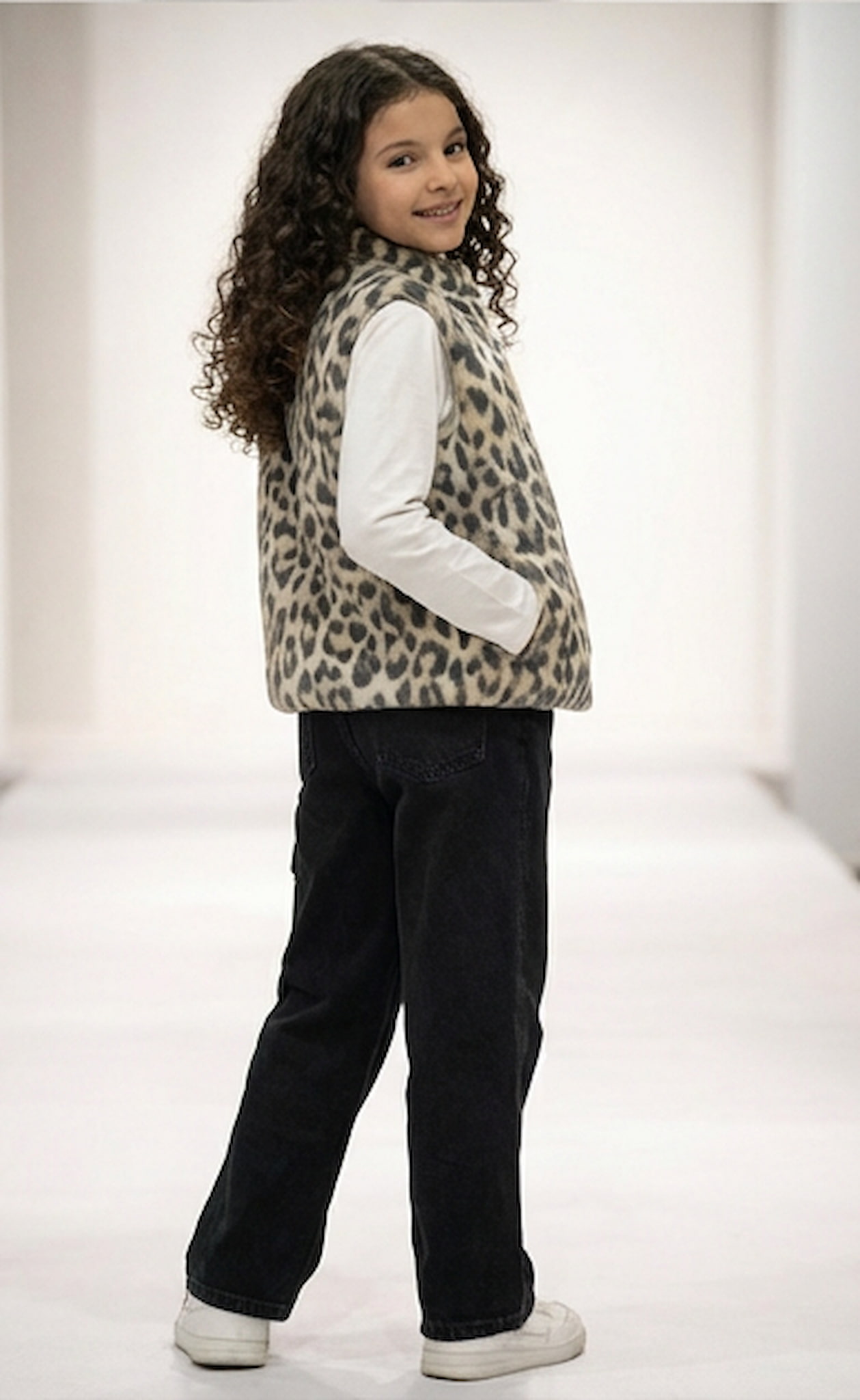 Un ensemble tendance au style moderne et affirmé. La tenue se compose d’une doudoune sans manches à imprimé léopard, douce et confortable, parfaite pour apporter du caractère à la silhouette.